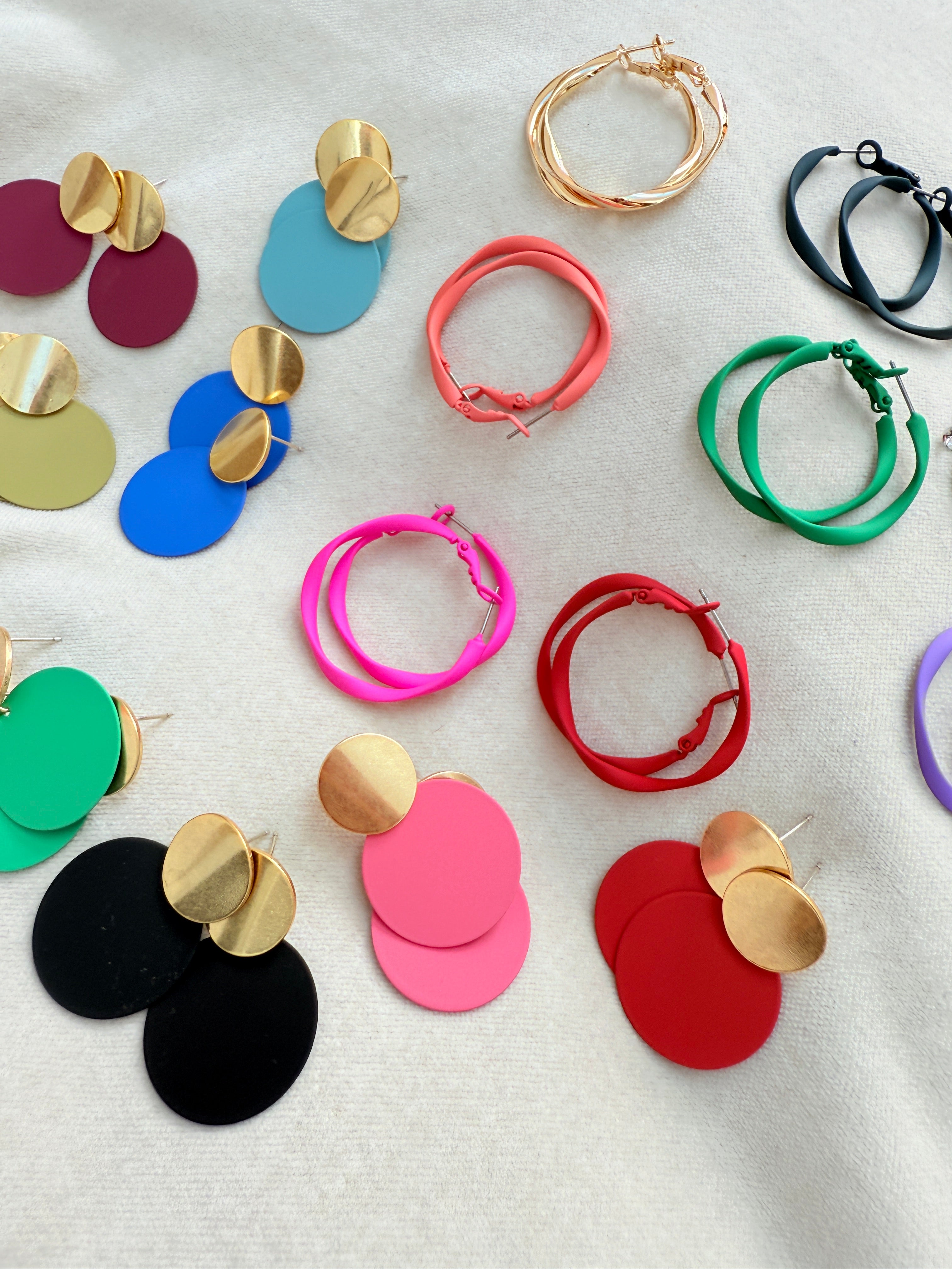 COLOURED DISC EARRINGS - VARIOUS COLOURS
