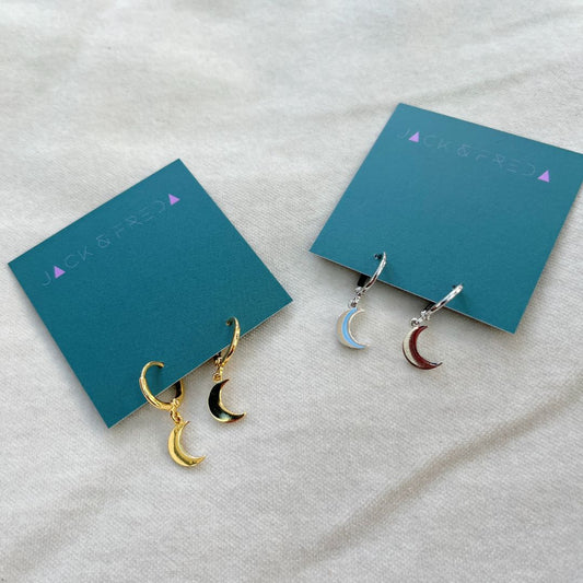 MOON HUGGIE EARRINGS - GOLD OR SILVER
