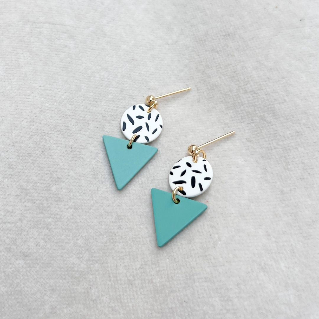 Dip your toe into the 80s-inspired style with our Mini Memphis Studs. A playful pop of colour with a bold pattern and striking geometric shapes.
