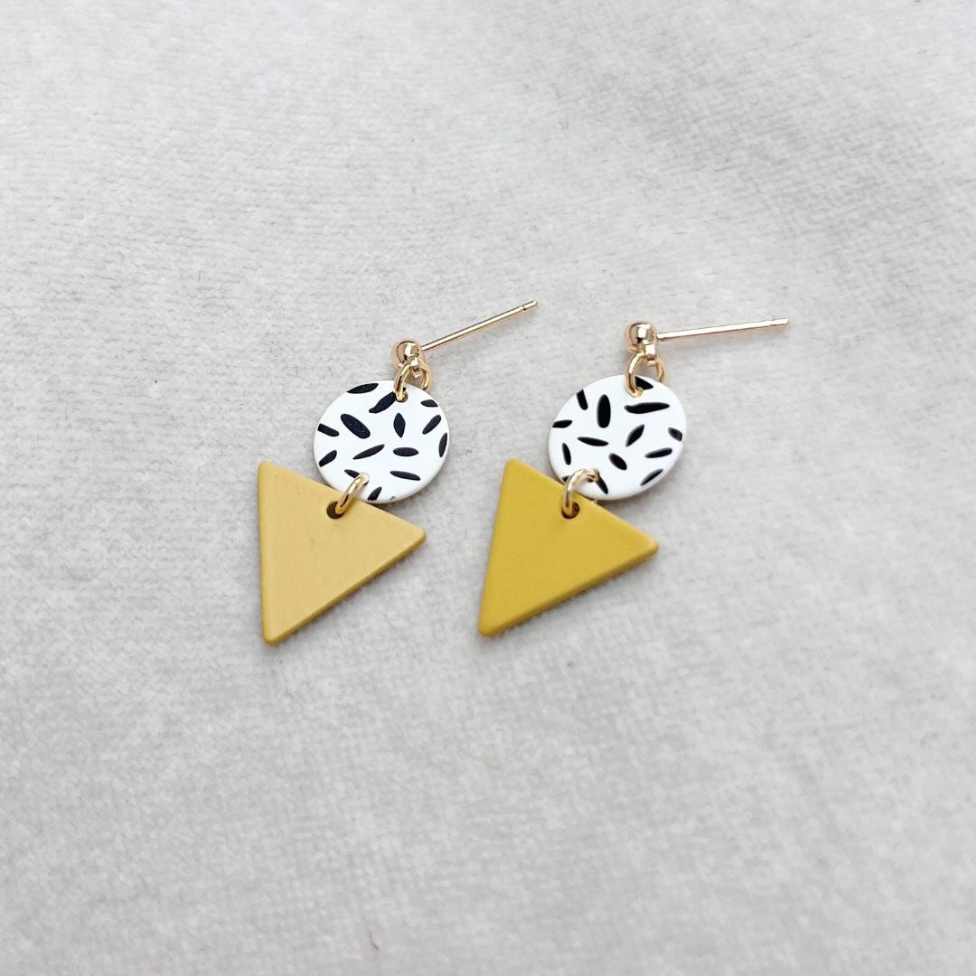 Dip your toe into the 80s-inspired style with our Mini Memphis Studs. A playful pop of colour with a bold pattern and striking geometric shapes.
