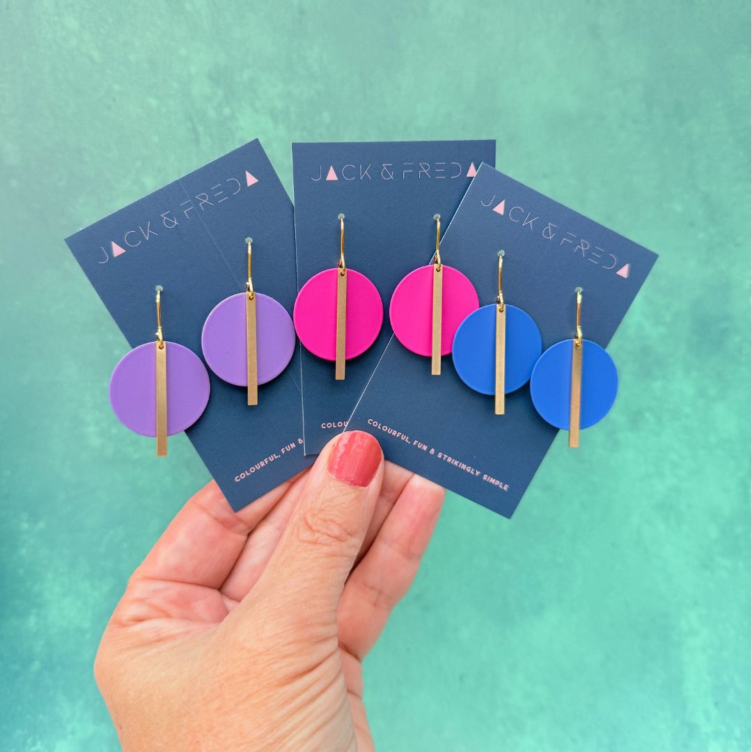 Feel uplifted everyday wearing our colourful Solar earrings. Simple earrings with big personality, available in 13 colours.